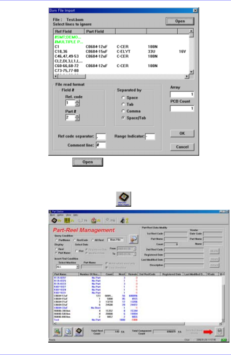 Samsung Intelligent Feeder System ③ Press the button to import the Bom File and set the file format. Then click the <OK> button. ④ If the searched part does not exist in th e DB as shown in the following figure…
