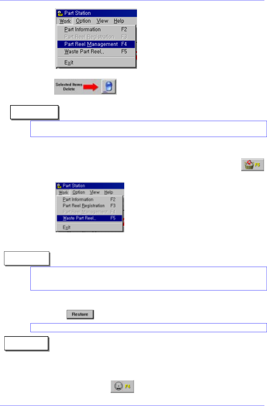 ③ Select the reel to be restored in the Waste Part Reel (F5) and restore it by pressing