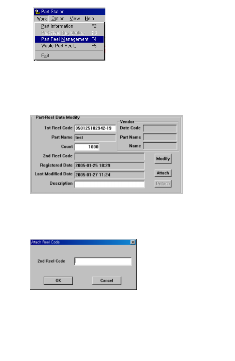 1. As indicated in the following figure, select the Part Reel Management (F4) submenu in