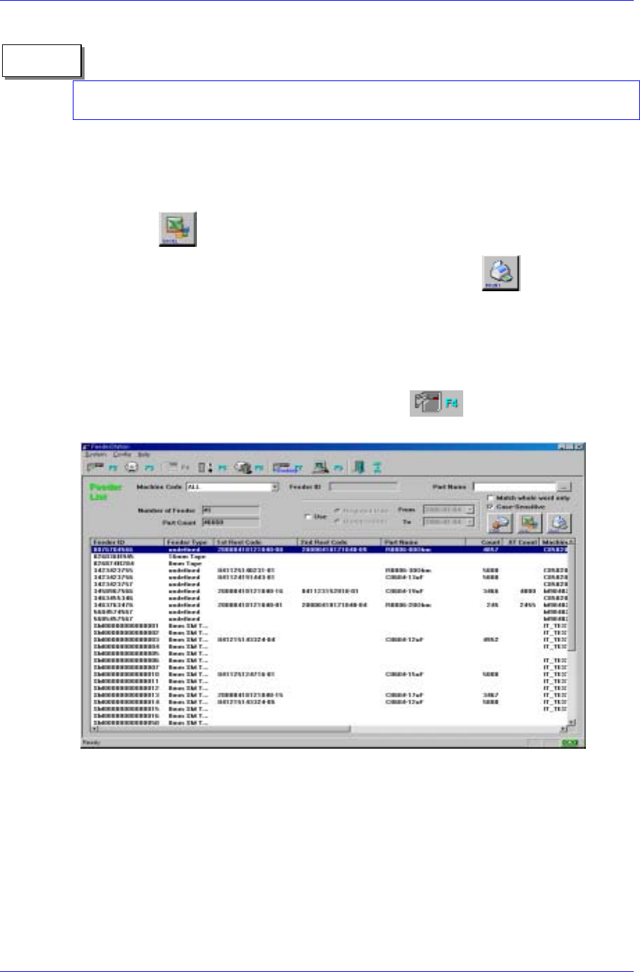 database prior to use. In the Feeder Info[F2] screen if a non-registered feeder ID