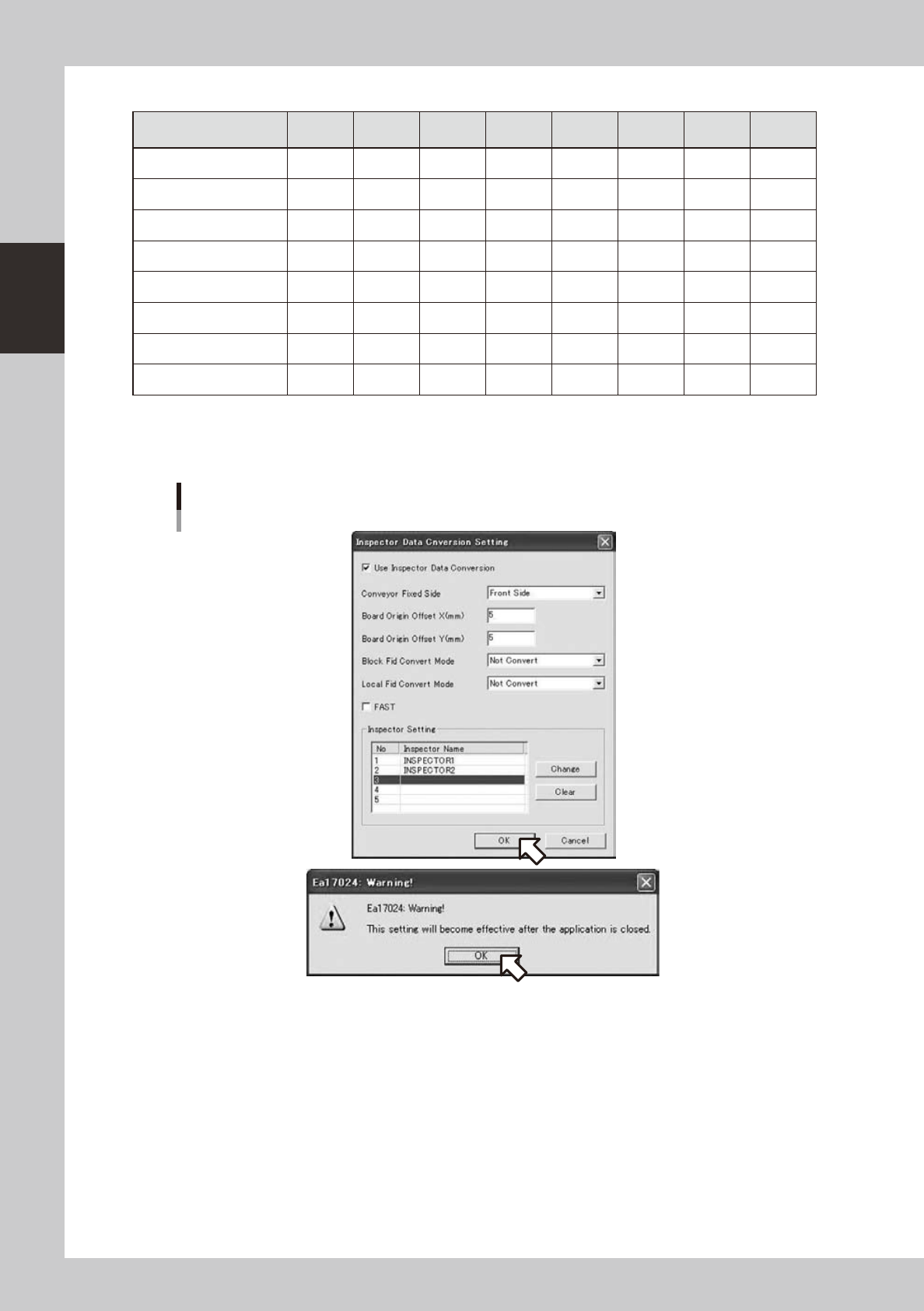 Inspector detail setting screen will be indicated if the [Change] button is clicked in