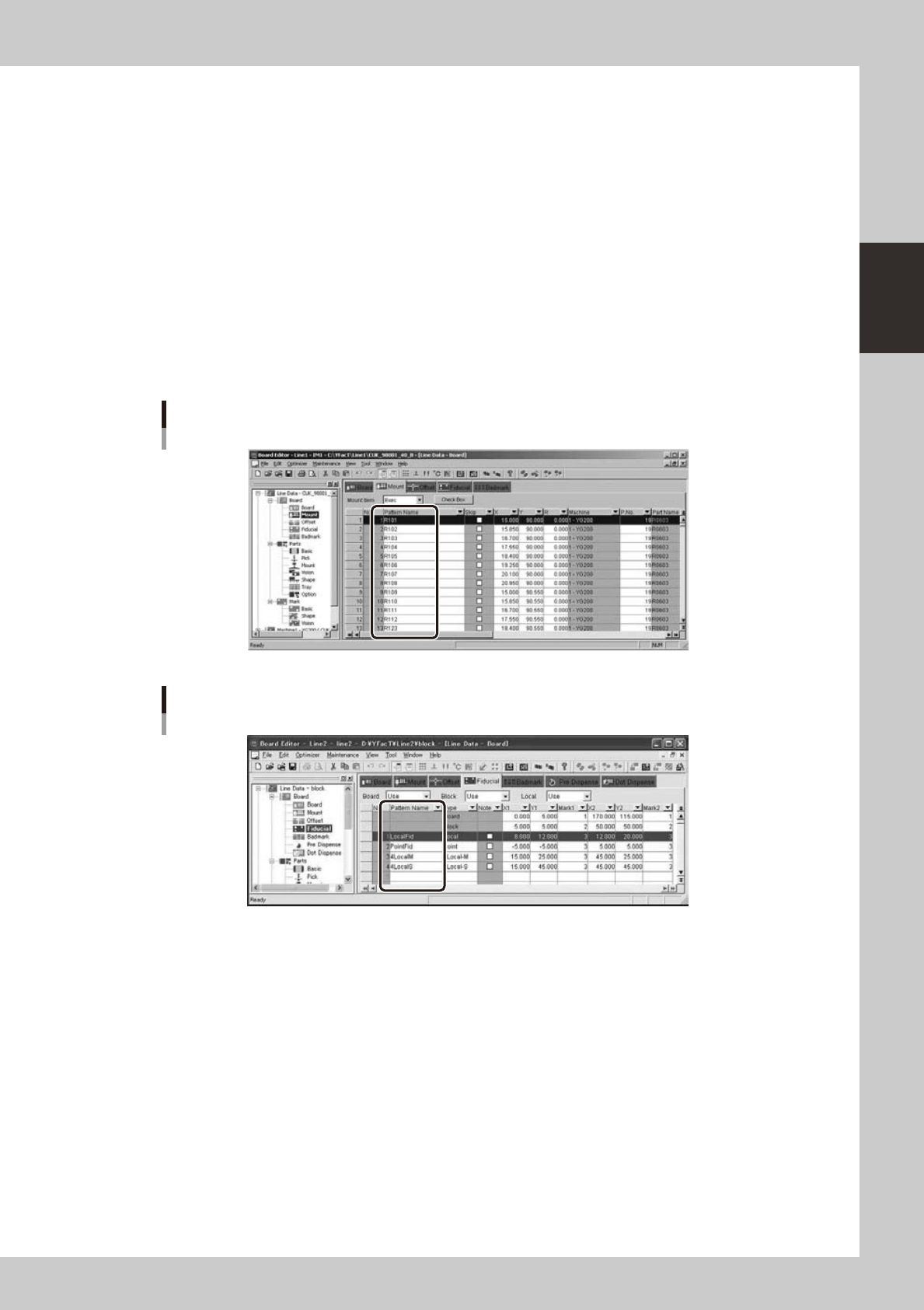 •YoumustsetthePatternNamesintheFiducialInformationwithin9characters.