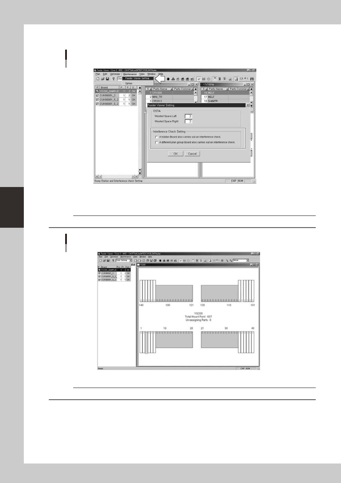 You can set conditions to perform a feeder interference check, by selecting “Feeder Viewer Setting” from the