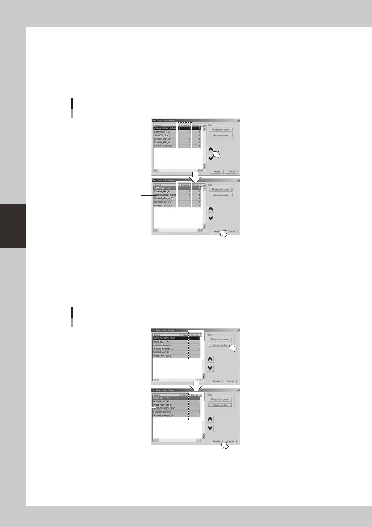 production count (number of boards to produce) or group number. By rearranging the order of board data, you