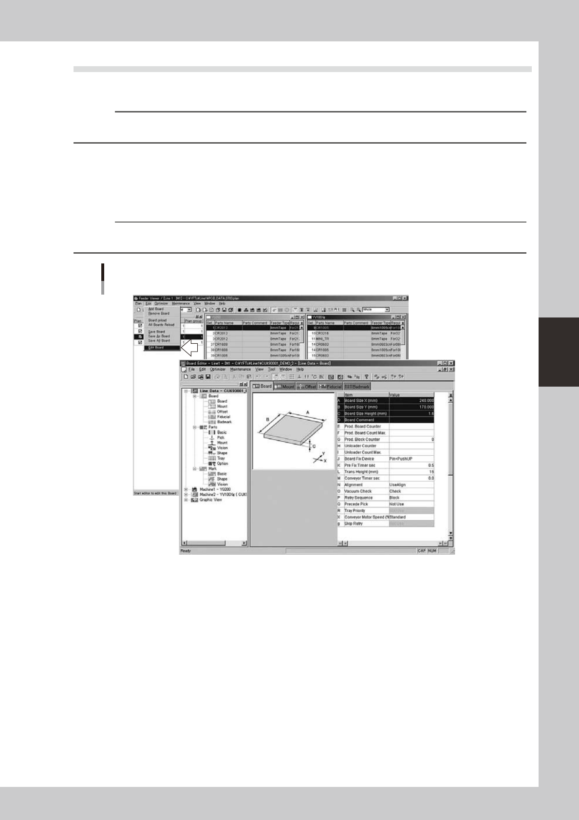 board data on Board Editor. The edited board data will be reflected on the Feeder Viewer.
