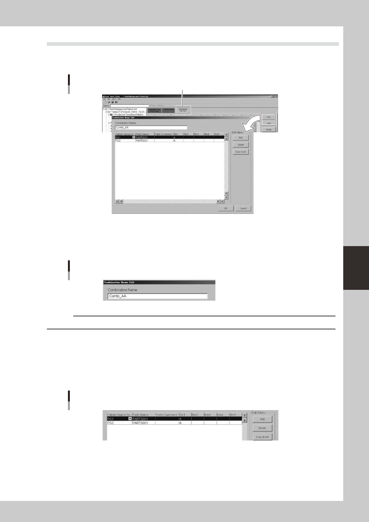"Combination Name Edit" dialog box. Here you can enter, add, or delete combination.