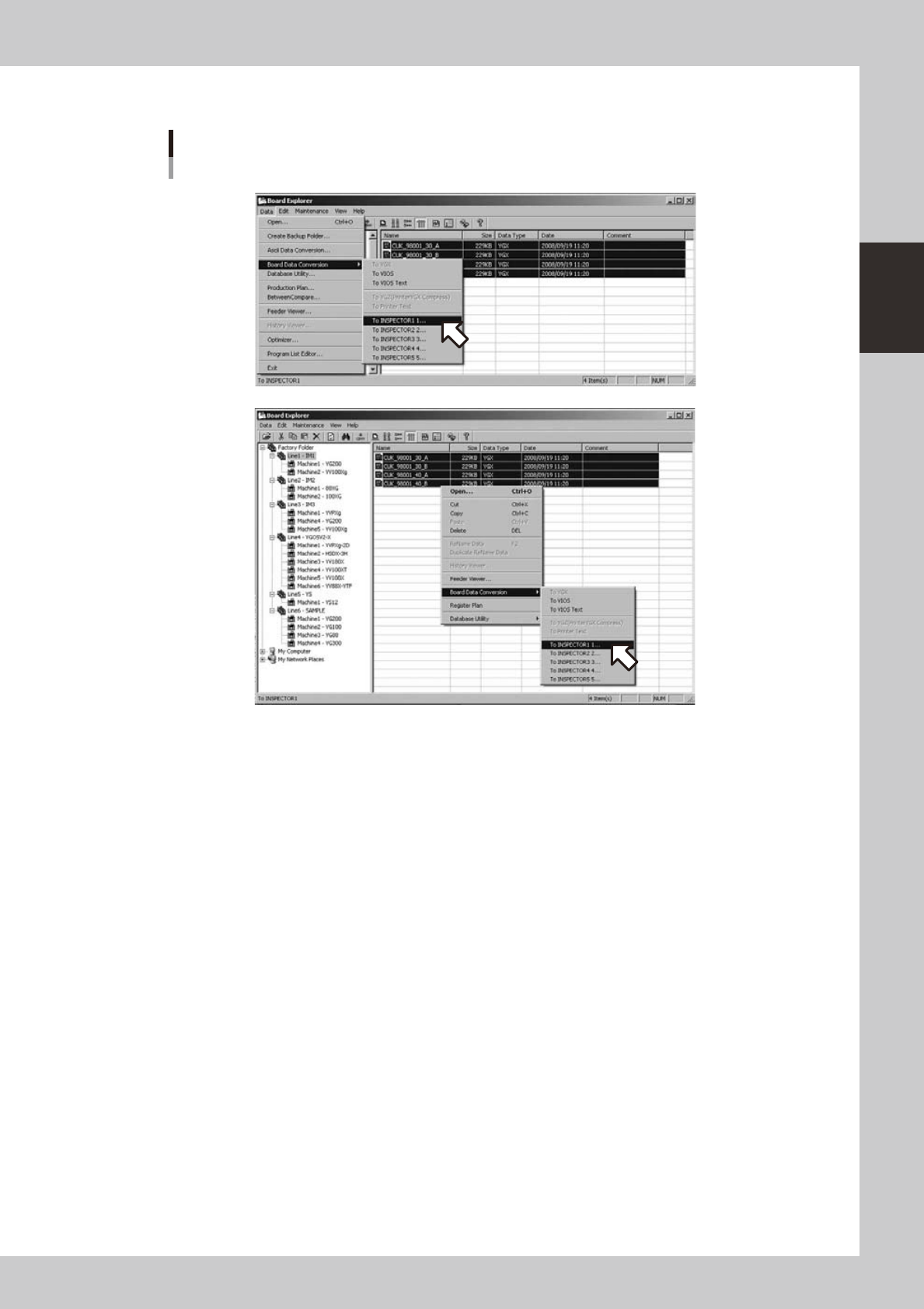 Sets up a setting for converting board data to the Inspection program with the board explorer.