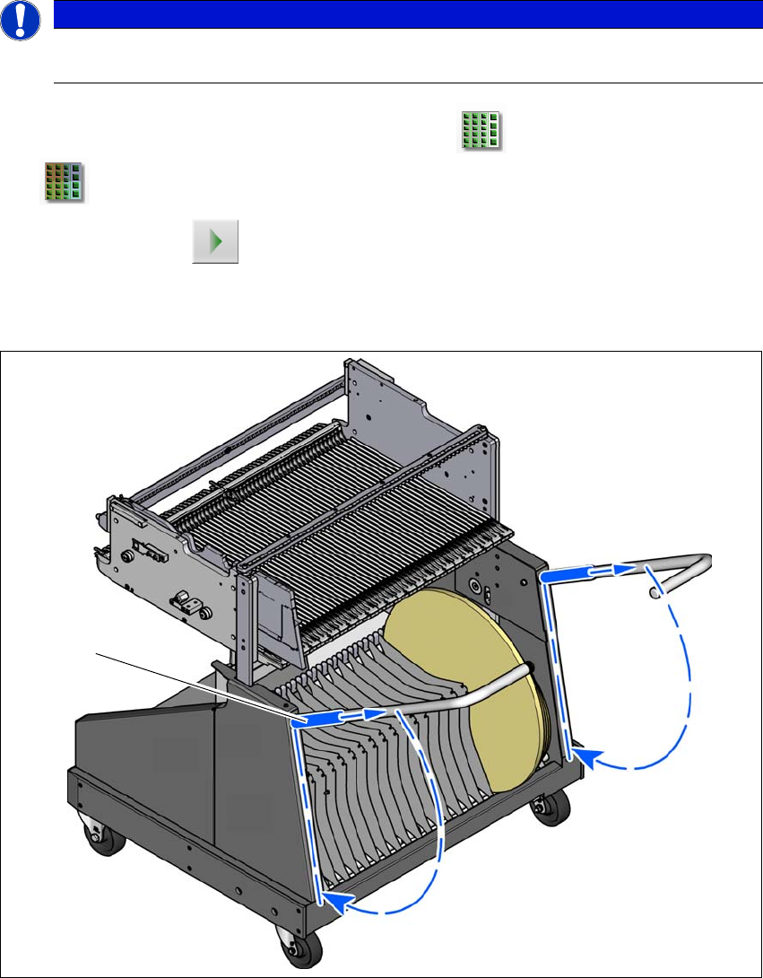 Před zasunutím vozíku na součástky zastřihněte pásy do roviny.