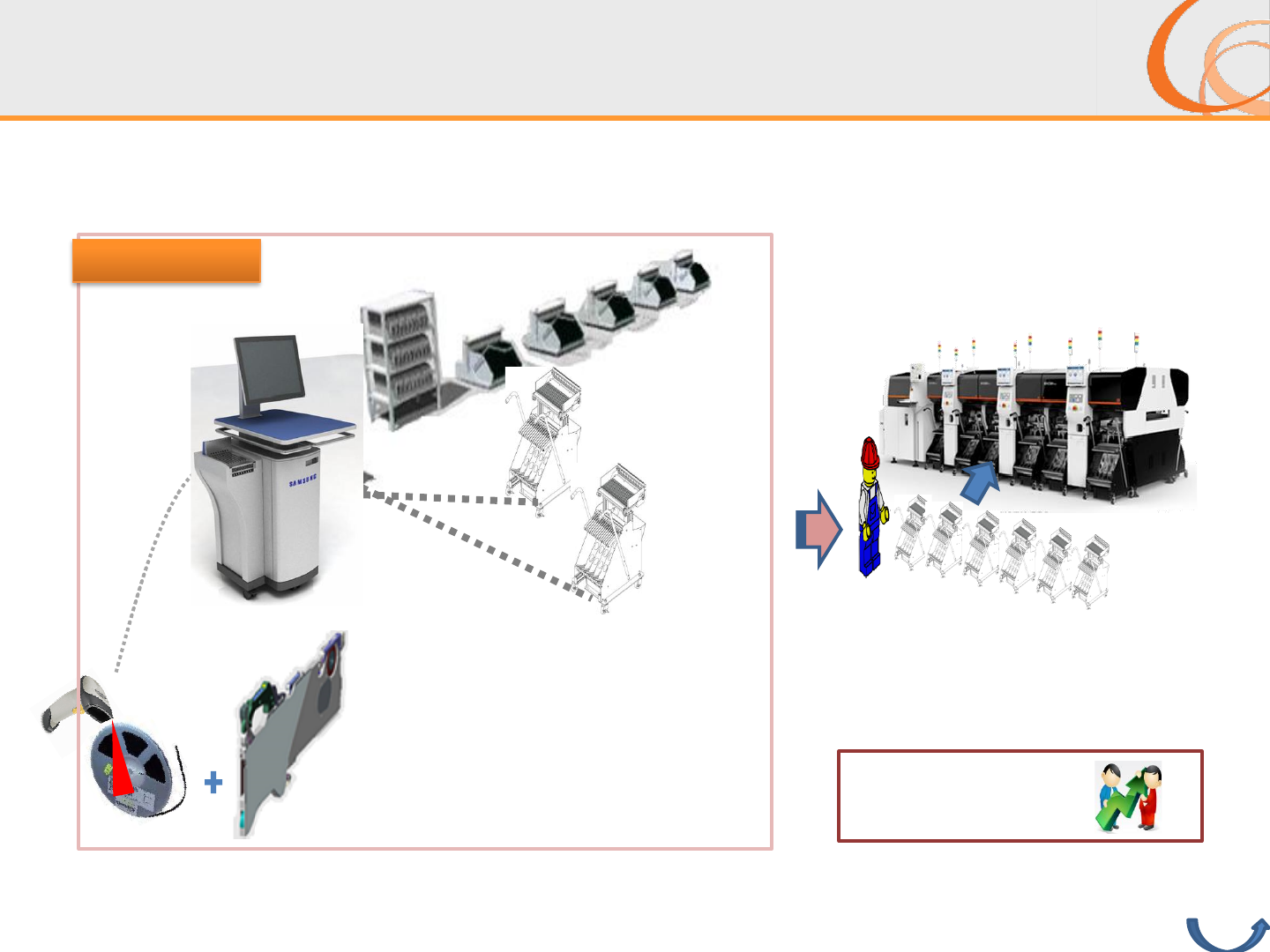 Copyright ⓒ 2015 Hanwha. All rights reserved ▣ 提前准备供料器 Table Top Station Docking Cart [ 供料器准备室 ] 在 OFFLINE 上,将下一个 JOB 上所需的元件放在料车上,提前做好准备 缩短换线时间 提升生产线产能 不需要检查条码 提前完成检查条码 / 安装供料器工作 [ 生产线 ] T-PV S in station 返回