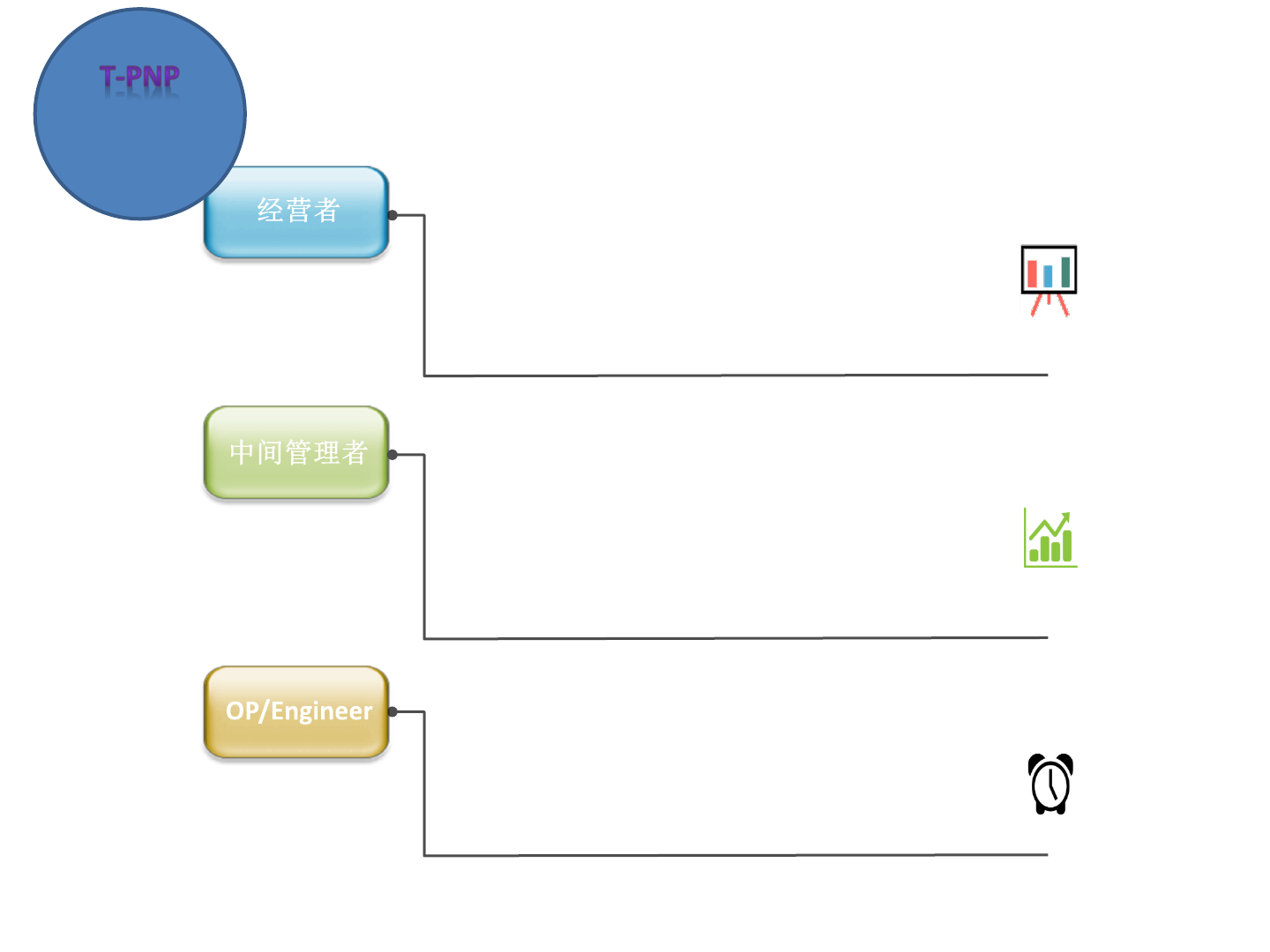 概要 – P&P 的必要性 经营者 中间管理者 · 想按时生产完毕,今日生产速度怎么这么慢? - 想知道理论上的瓶颈设备和实 际瓶颈设备。 - 因为很忙,没时间检查设备的 情况。 OP /Engineer · 以“无”投资,想实现产能最大化。 - 不知道(陈旧)设备性能改善 方法。 · 想缩小 OP/Engineer 之间散布。 - 害怕培养生手后留不住并跳槽 的情况。 · 以准确的数据,想看我们工厂的产能。 - 不知道每个月我…