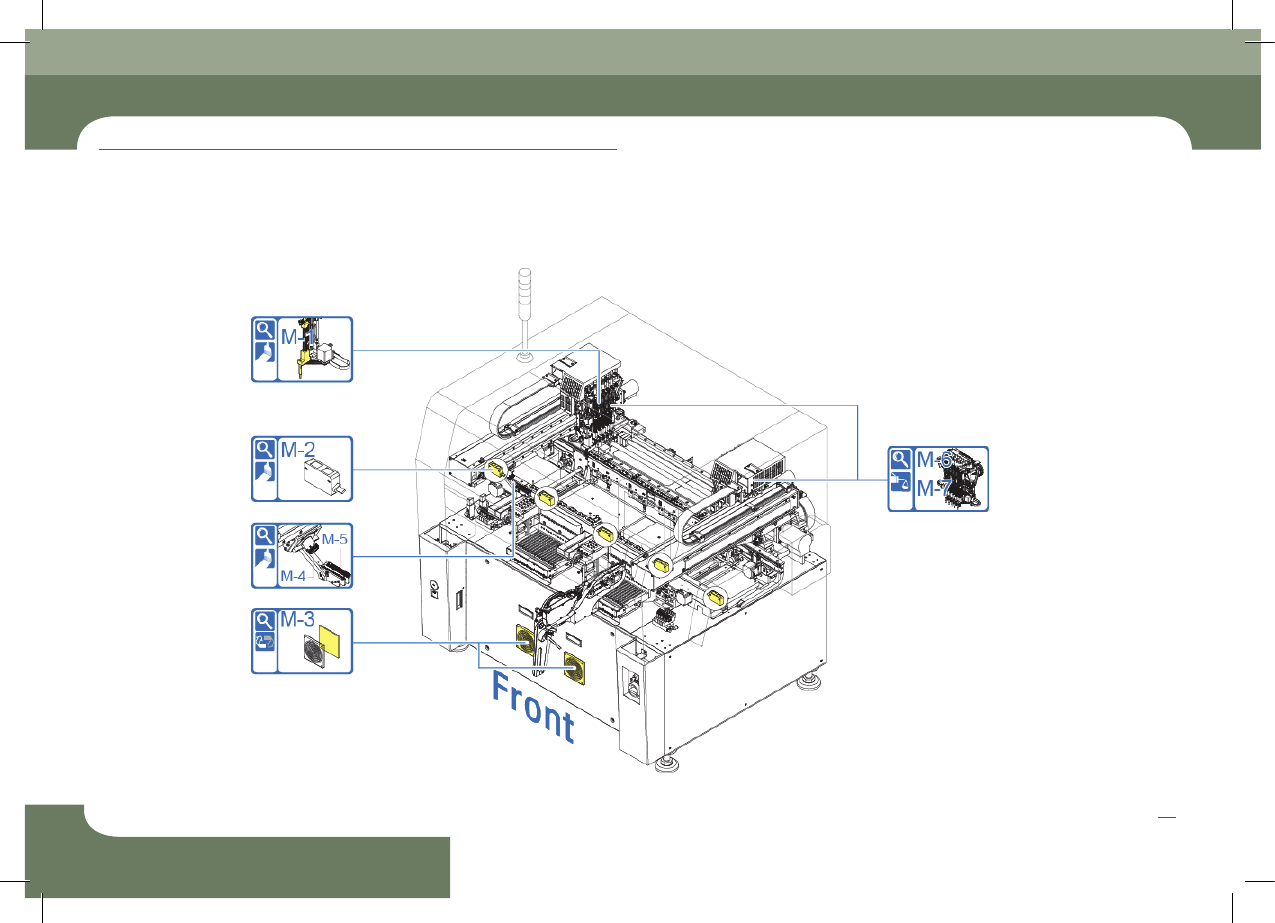 High Perform ance Modular Mounter Cha pte r 2 SLM1 20/1 20S/110 Maintenance Handbook 29 Ul tra H ig h Spe ed L E D / Le ns Mo unt er 维修检验事项 注油项目 参考事项 Replacement Time 注油周期 No. 注油项目 注油事项 工具 每月 M-1 Head Spline Hole 检查及清扫 气…