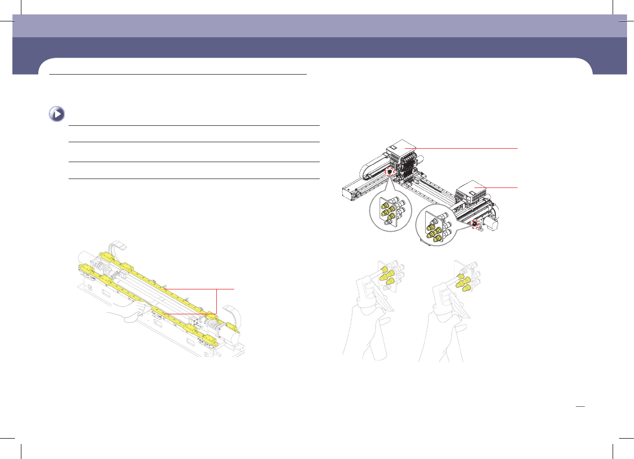 Cha pte r 5 Ul tra H ig h Spe ed L E D / Le ns Mo unt er Chapte r 5 每月检验 SLM1 20/1 20S/110 Maintenance Handbook 62 每月检验 4. 利用干净布擦掉贴片头主轴 (Head Spline) 下端的杂质 。 5. 使用刷子在贴片头主轴下端涂敷滑脂 (Grease) 后,上/下移动主轴 (Spindle) 三次 。