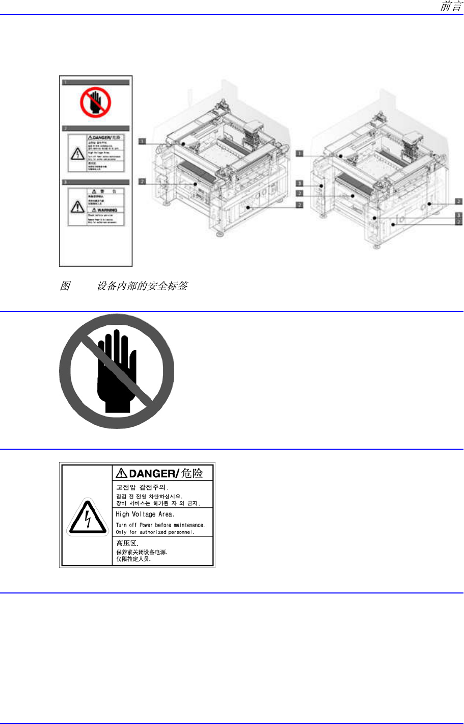 vii 设备内部 设备内部贴有以下标签 0-3. 请不要触摸 Head 部。 注意触电危险(禁止接 触) 在维护和保修前,一定 要关闭主电源开关并 小心残余电流,否则会 有致命的伤害。