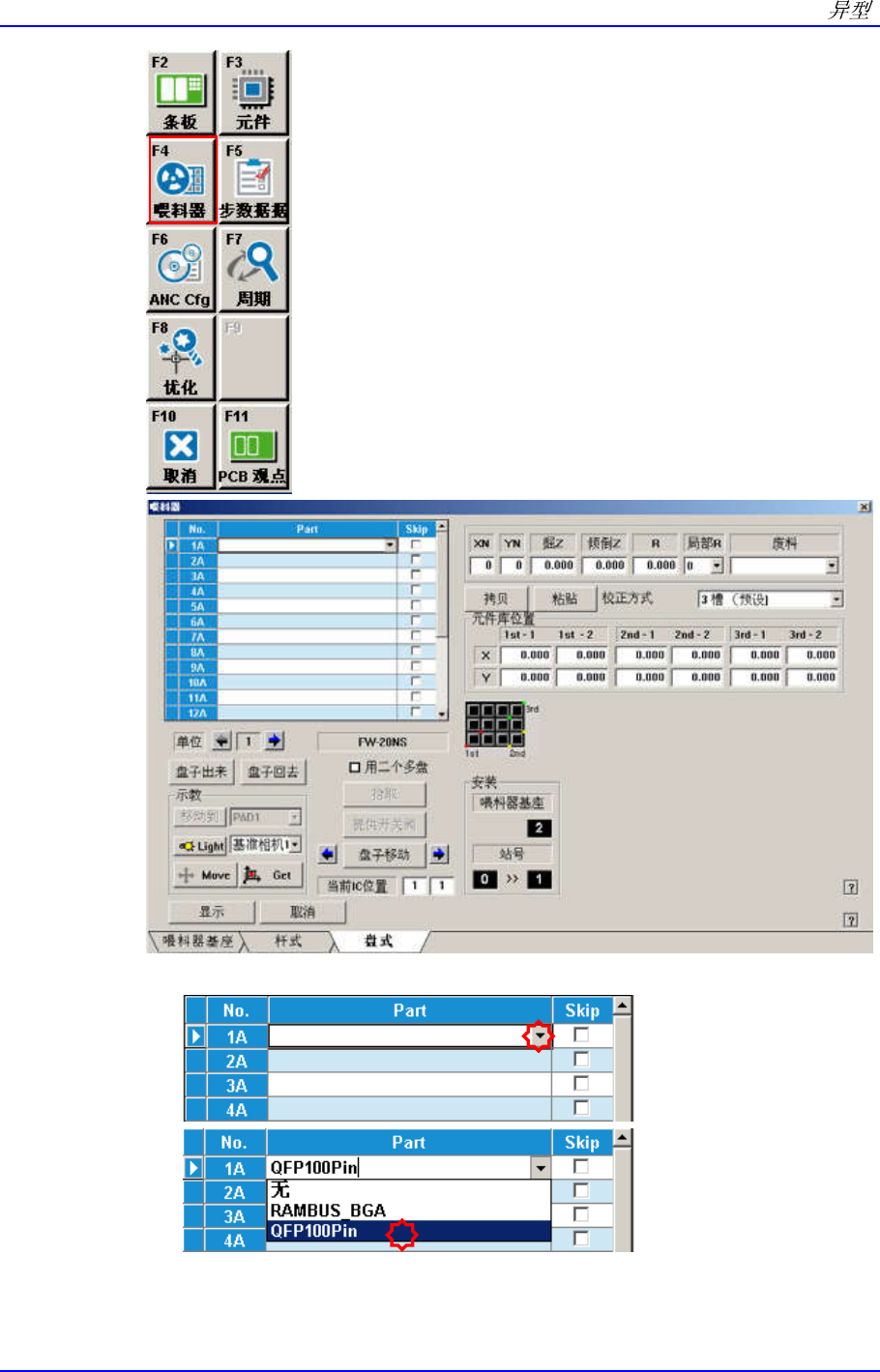 Samsung Component Pla cer SM421 Pr ogramming T utorial Pallet Out: 选择该元件后, 选择 ’ 盘子出来 ’ 。 Pocket Posit ion: 对 Pallet 的个位置进行 2Point Teaching 。 完成了对 3 个套 (pocket) 的示教后,将自动设置各套的坐标 。 2-38