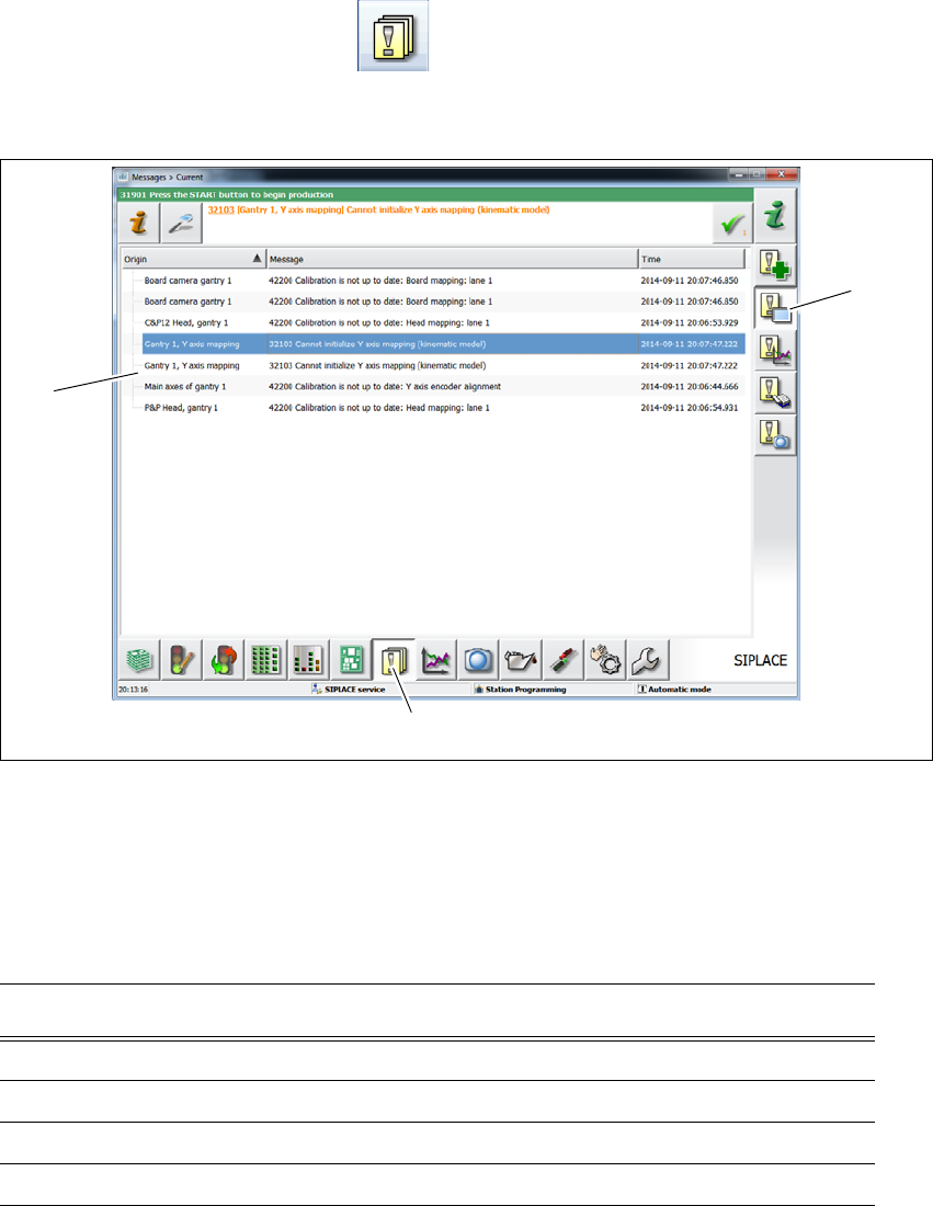 5 Činnosti na stroji Provozní návod E by SIPLACE 5.7 Hlášení a online nápověda Od verze softwaru SC 712.1 Vydání 0 5/2019 216 5.7.1 "Zobrazení informa cí k aktuálnímu alarmu 5 Pro zobraz ení informací k aktuál nímu …