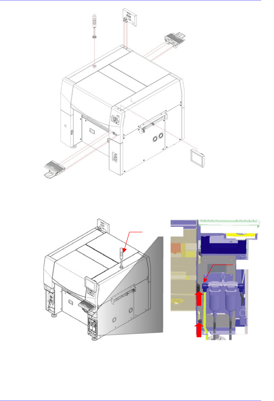 7. 4个螺钉将 Tower lamp安装在上表面左侧,并将 Tower Lamp 连接在设备内