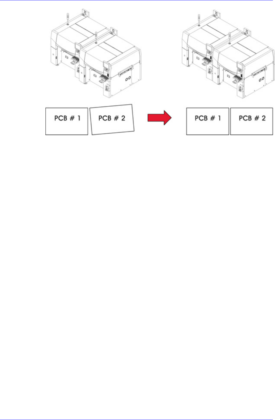 5. 为保证两台设备间的 PCB直线移动,设备必须正确安装,当 PCB紧挨参考线