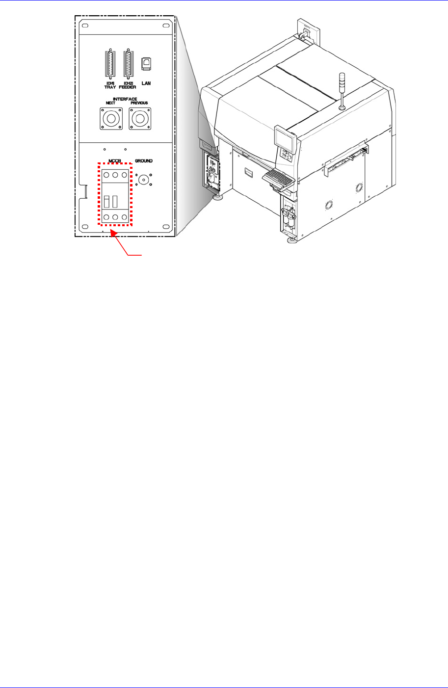 该装置可以开闭设备的主电源,位于设备背面左下角。