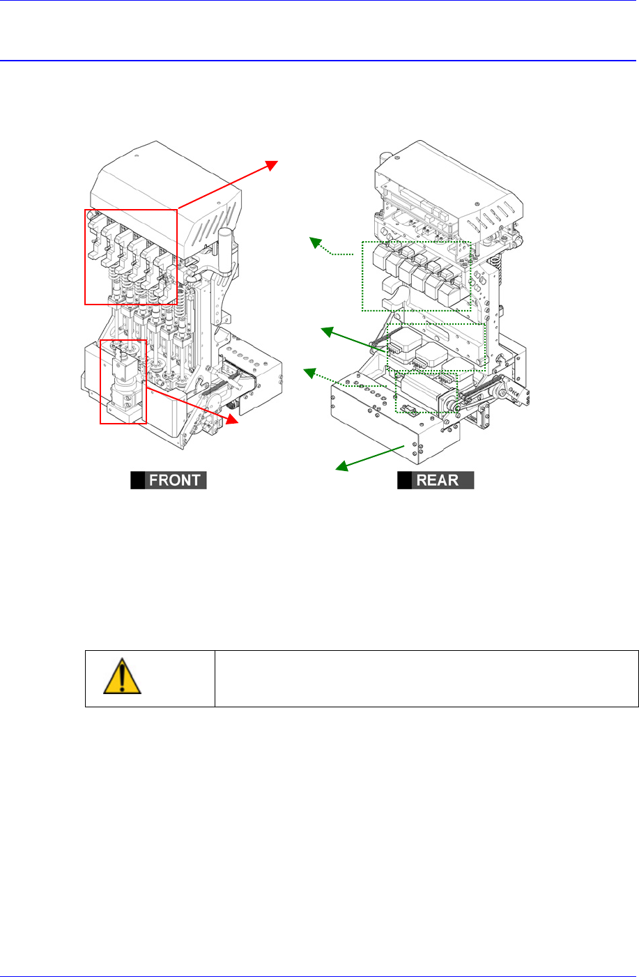 当吸头的Z轴下降时,将手伸到吸头下面可能有受伤的危险。