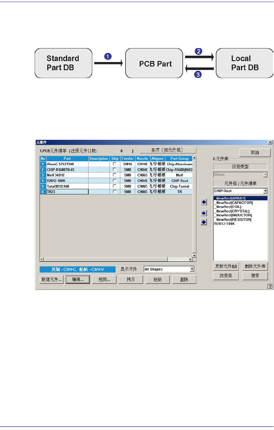 Local Part DB> 按钮,复制到相应Part Group的 <Part List> 目录框。另