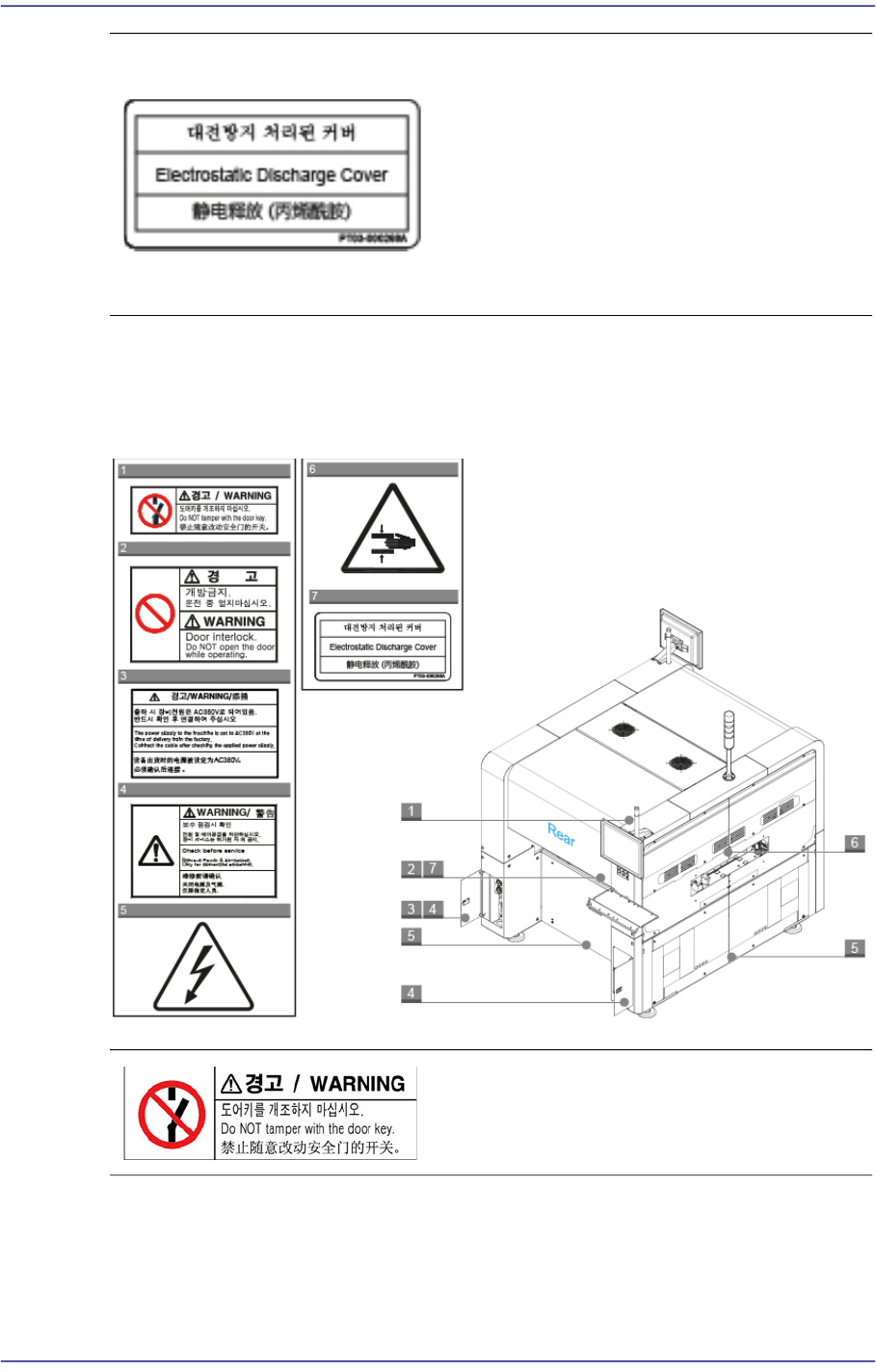 贴附在设备正面内部的安全标签