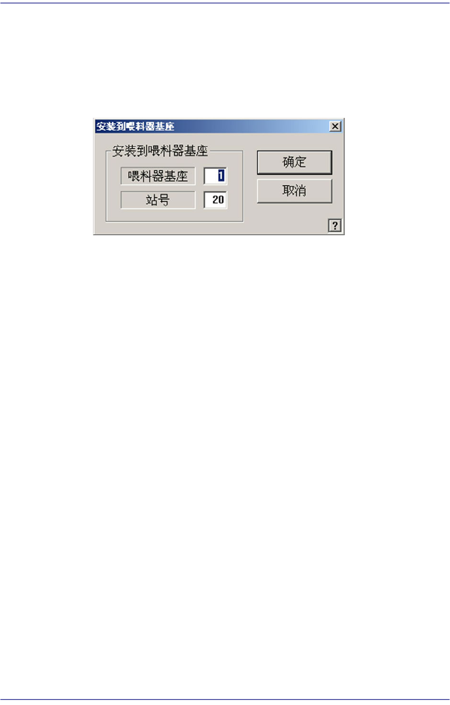 把杆式安装在喂料器基座时,设定喂料器基座单位和 Slot的编号。