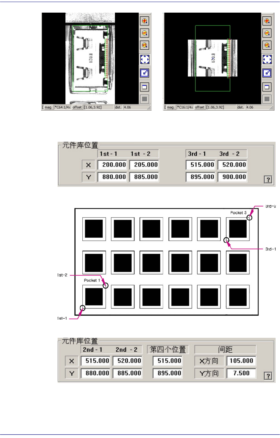 8-25 供应装置的设置 <2 槽 Y - 轴 > 如下图所示一一输入任何一个 Y 方向的 p ocket 的中心点坐标, 2 号 pocket 的 对角线顶点坐标, 以 及 X 和 Y 方向 间距 <1 槽 >