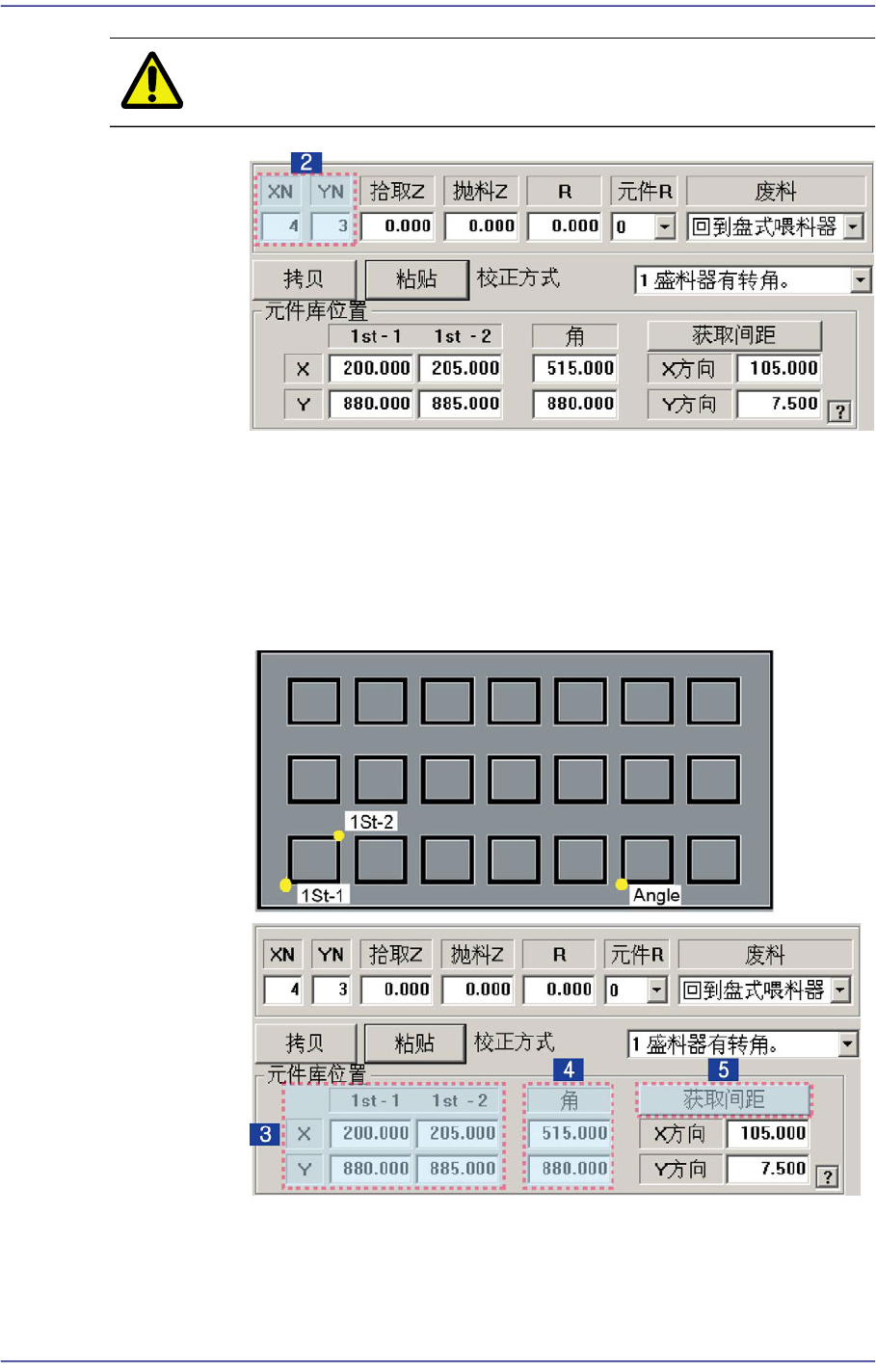 (4) 为了获得准确的托盘设置角度,请将照相机朝第一列下端的角坐标