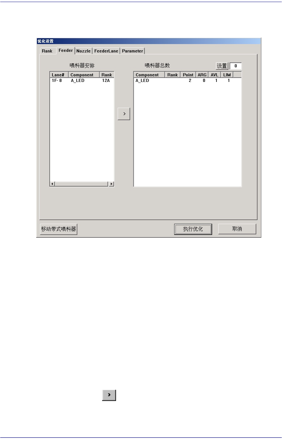 显示ARG和 AVL栏所显示的各部品喂料器的总数. 即此数字是可以分配到