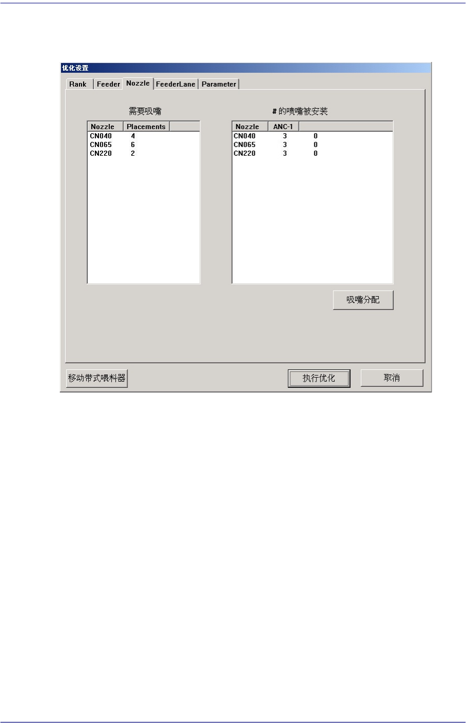 在此目录框表示当前分配在各ANC的喷嘴种类和数量。