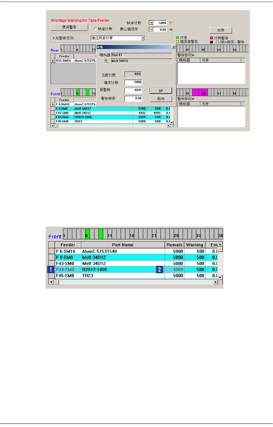 缺省计数’ 部件Reel时,选择对应Tape Feeder后,在 <Remain>列设置相应的