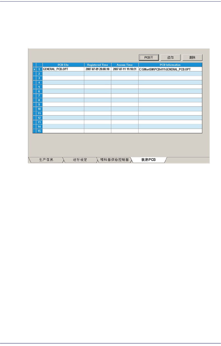 13-16 Next Generation, Multi-Function al Placer DECAN S1 Administrator’s Guide 13.1.4. 我的 P CB 注册主作业的 PCB , 更容易地加载注册的 PCB 文件。 可预先设置到 15 个经常使用的 PCB 文件。 图 13.6 “ 我的 PCB” TAP 对话框 < 增加 > 按钮 注册主作业的 PCB 文件。 < 删除 &…