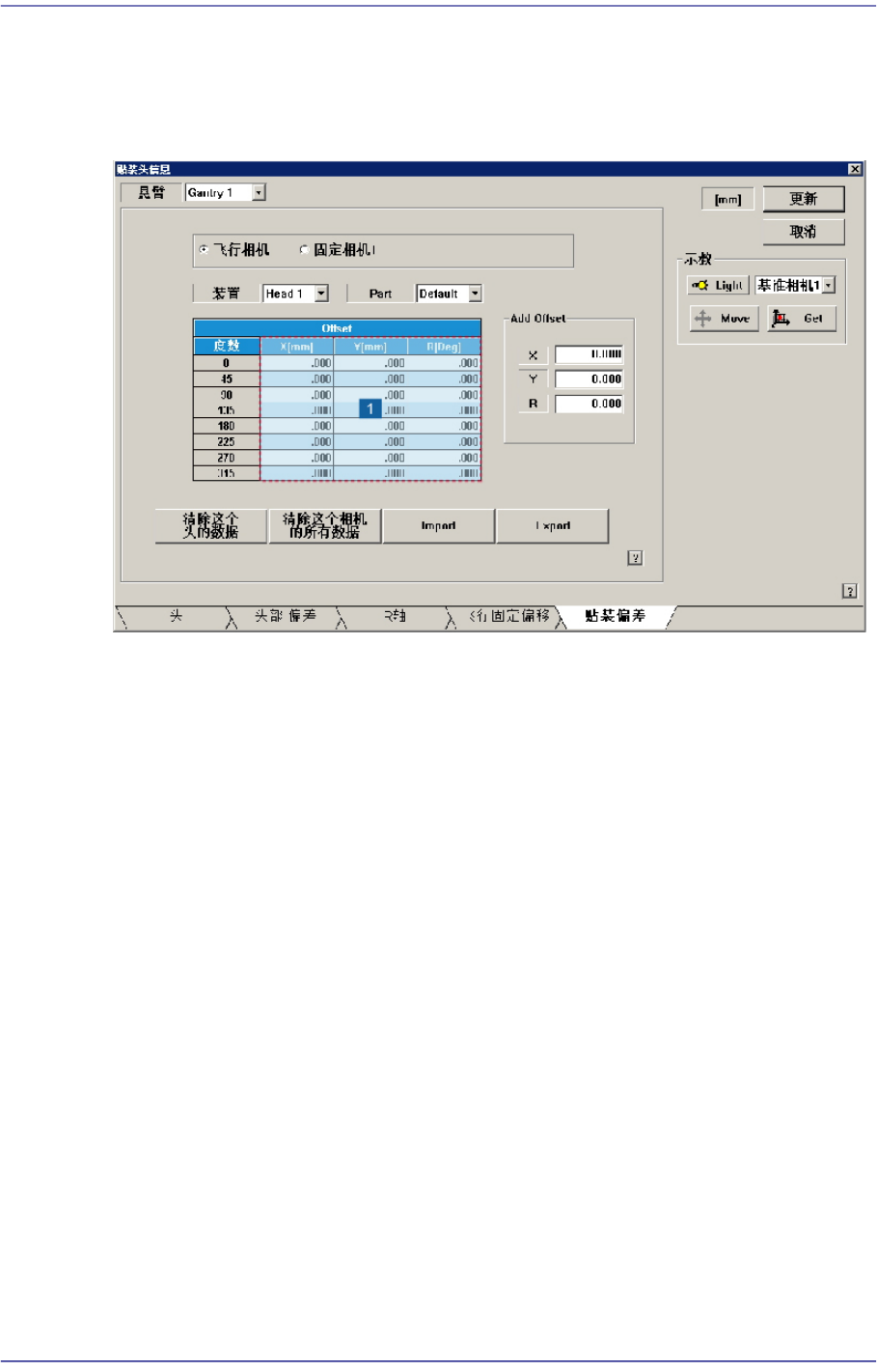 可删除选择摄相头相应的所有磁头的贴装偏移数据。