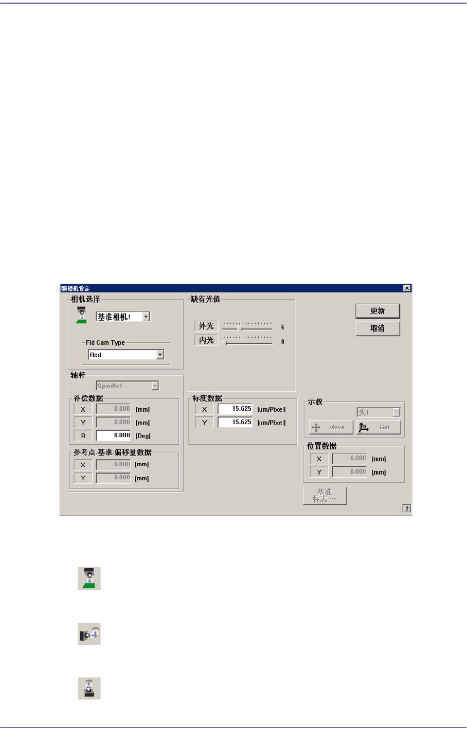 设定有关摄象机的偏移量(照相机补偿)的数据。