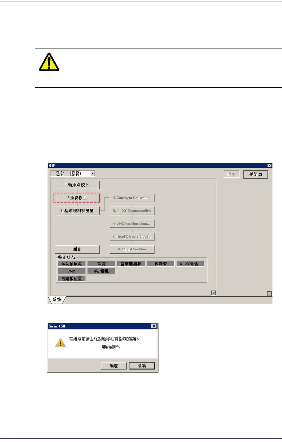 5. 确认设备内部或Conveyor上是否有物体后, 点击<确认>按钮。