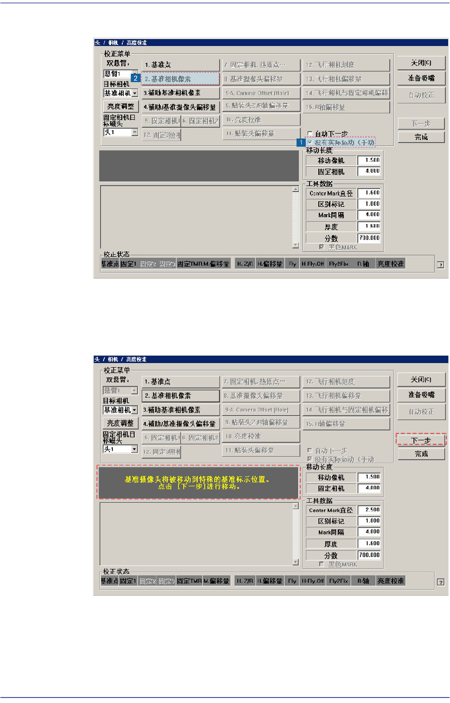 the specific Fiducial Mark’s position on ANC. Click [Next] to Move.”消息。然