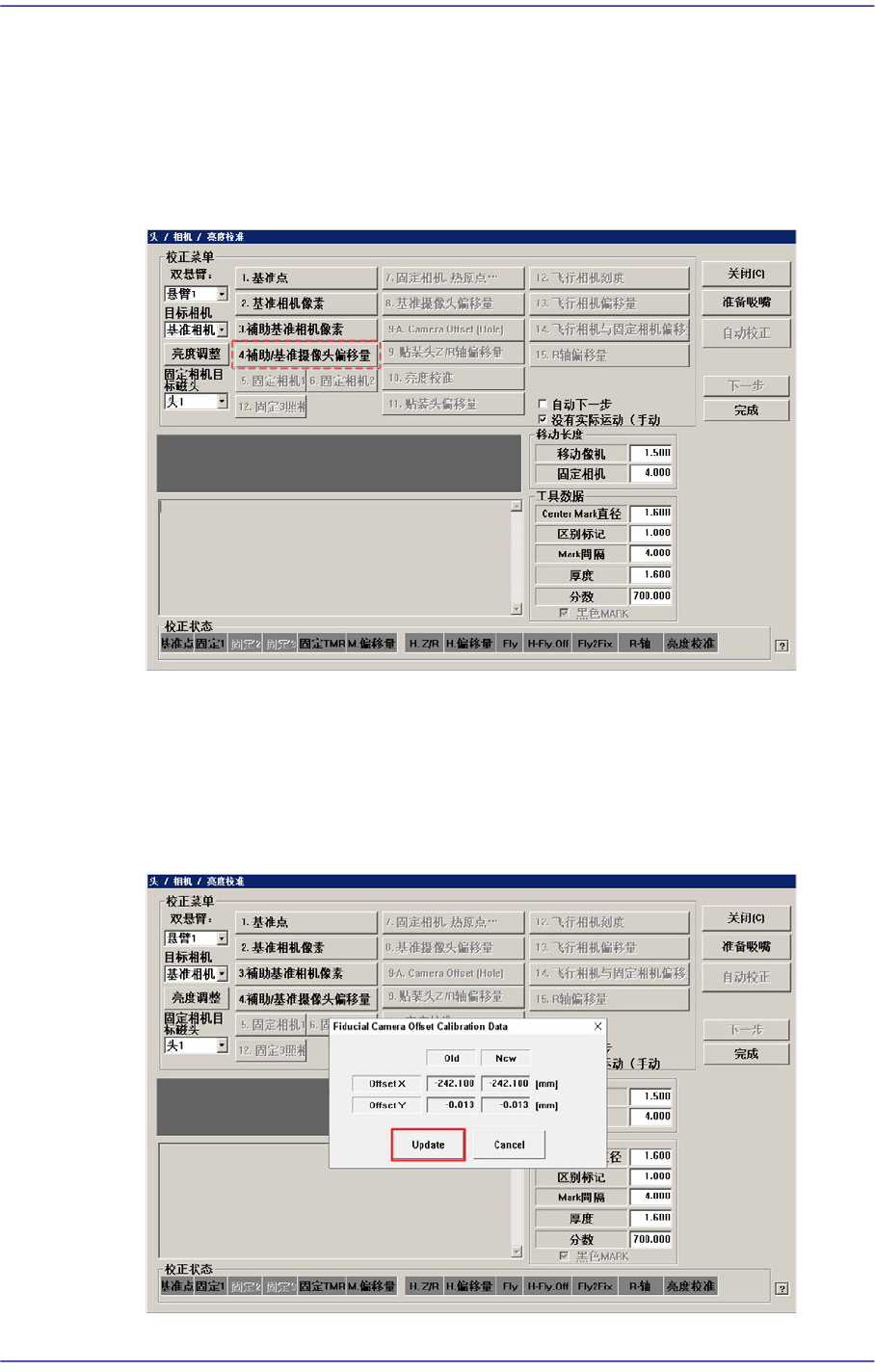 下面是 Fiducial Camera Offset的校正步骤。