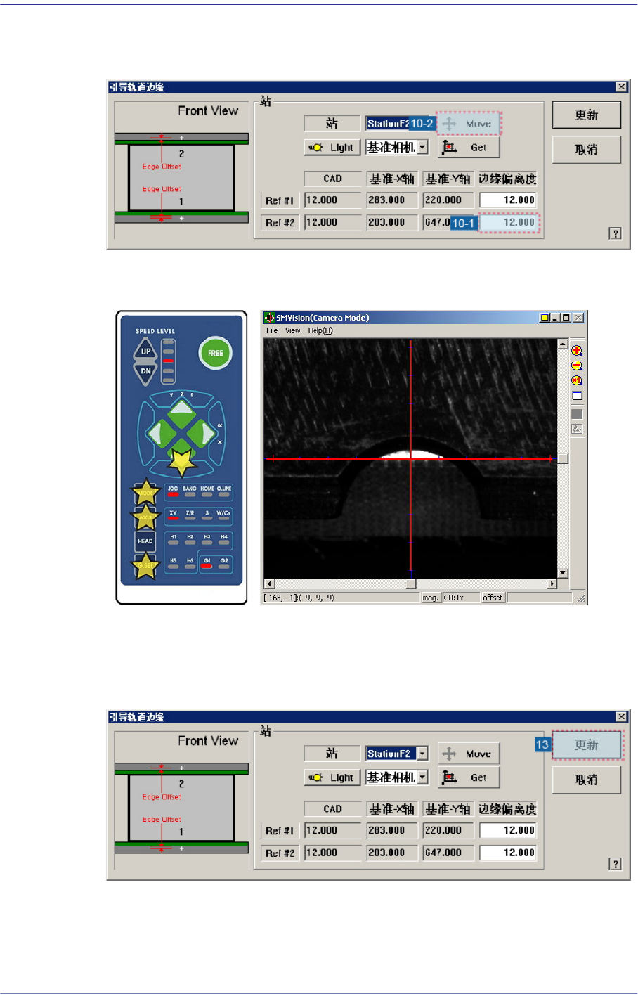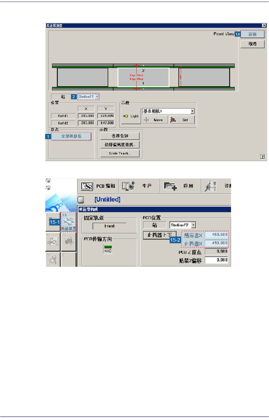 14-37 Machine Calibration 14. 点 击 <Update> 按钮 15. 校 准 完成后, 在 “Conveyor Configuration” 窗口中教授 Stopper 和 Sensor 的位置。