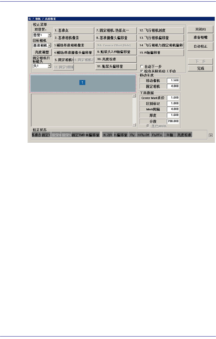 选择要Calibration的项目。 按特定项目的按钮则在消息窗依次显示必要的说明。
