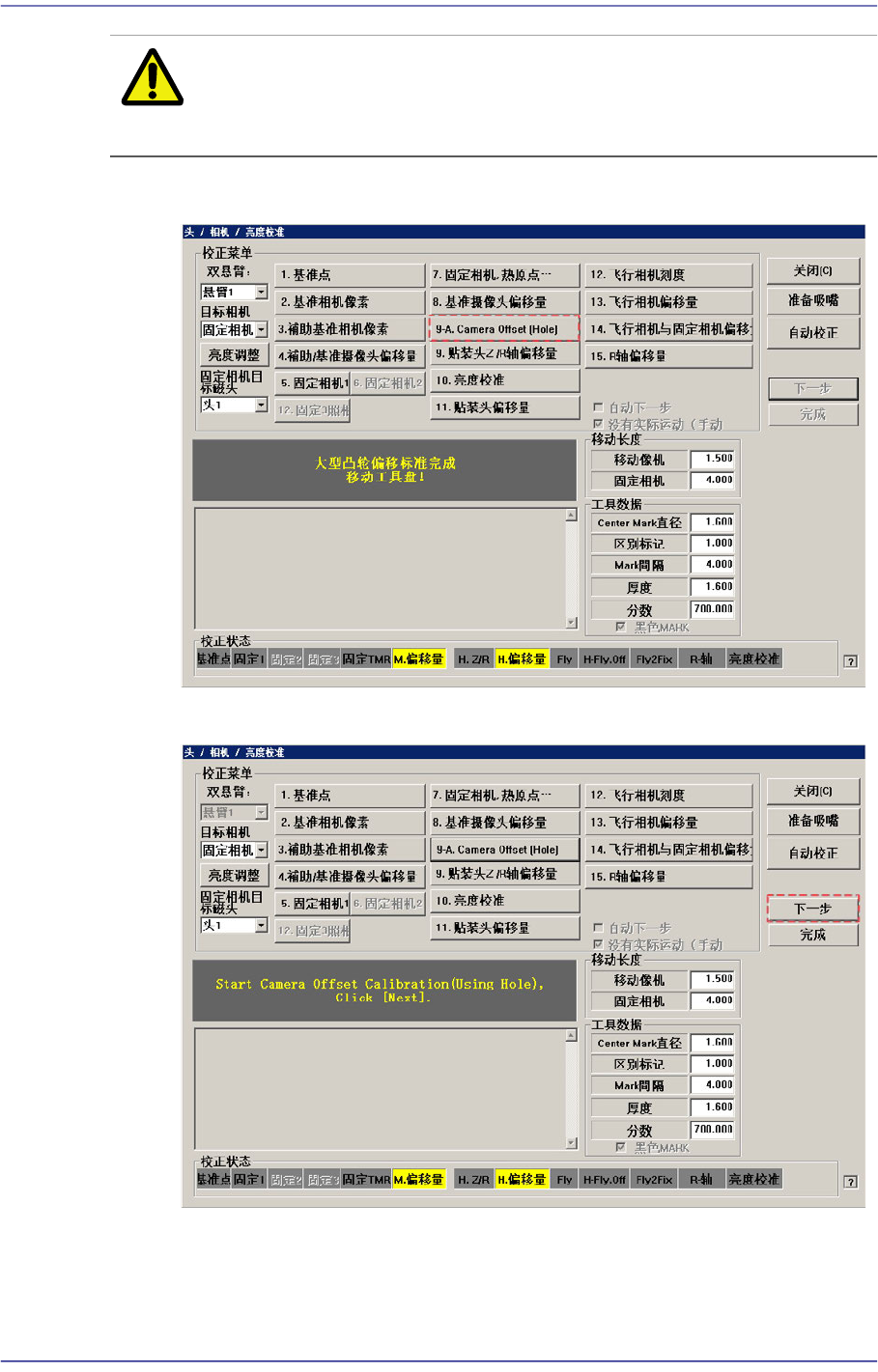 备 注 要想激活<9-A.Camera Offset(Hole)> 按钮,需先设置System