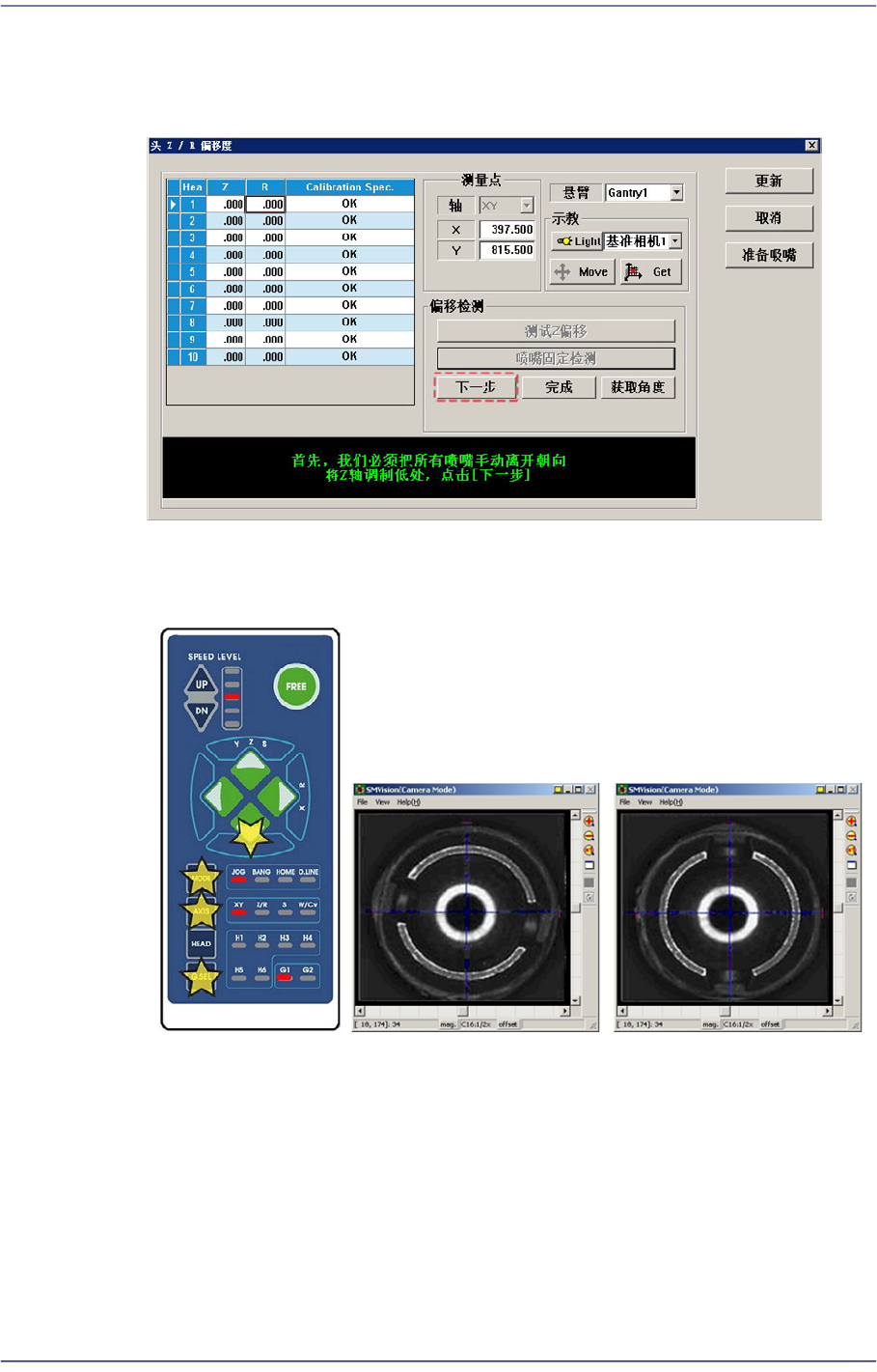 了在飞行相机上看见Head吸嘴支撑架,把Spindle上升到可以识别部件的高度