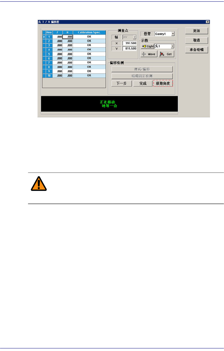 测量Gantry的基准相机中心到各Head中心的距离(XY Offset)。