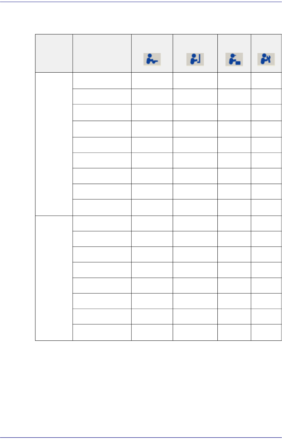 以下是列出不同用户接近MMI菜单权限的表格。