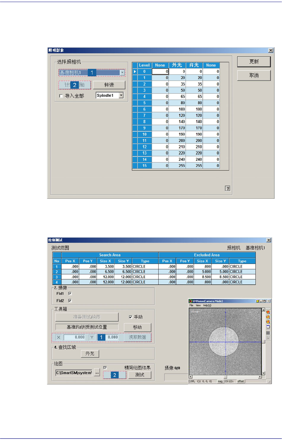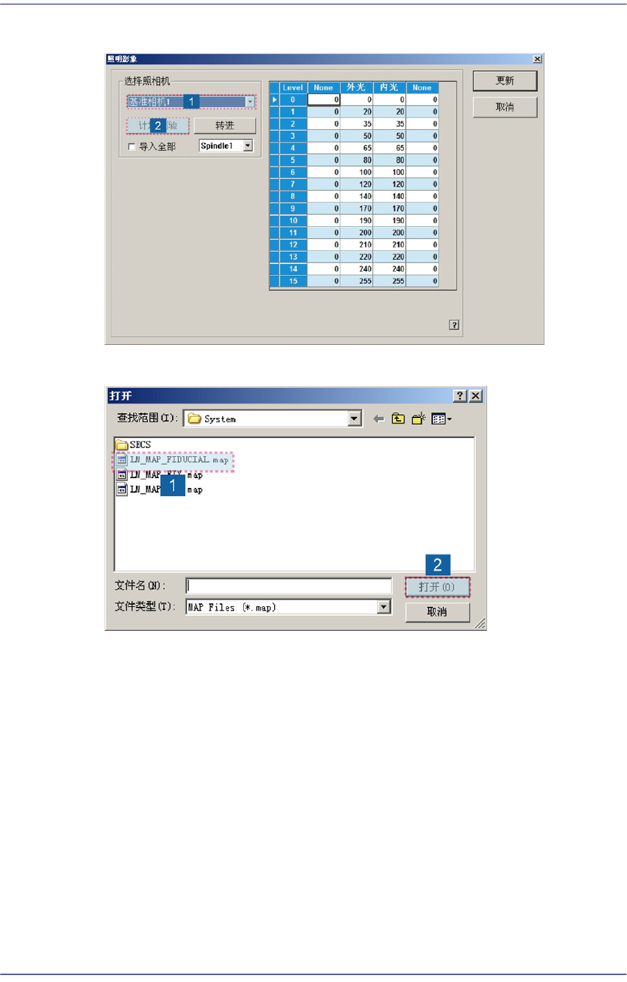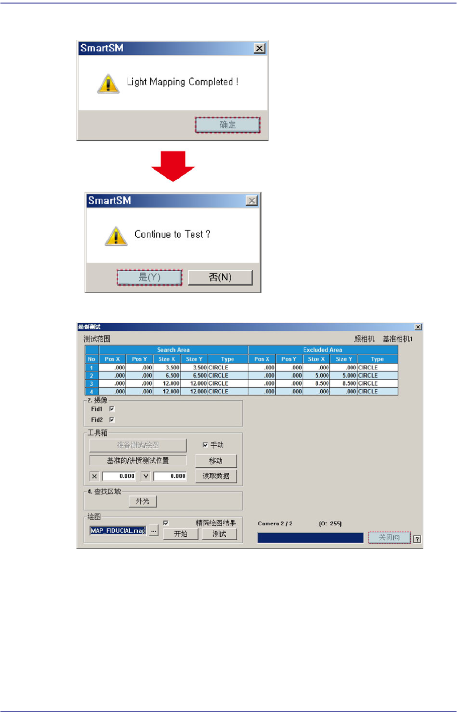 15-39 系统设置 3. Light Mapping 完毕后, 针对 Mapping 结果实行 T est 。 4. T est 完毕后, 单击 <Close> 按钮结束 Mapping T est 对话 框。