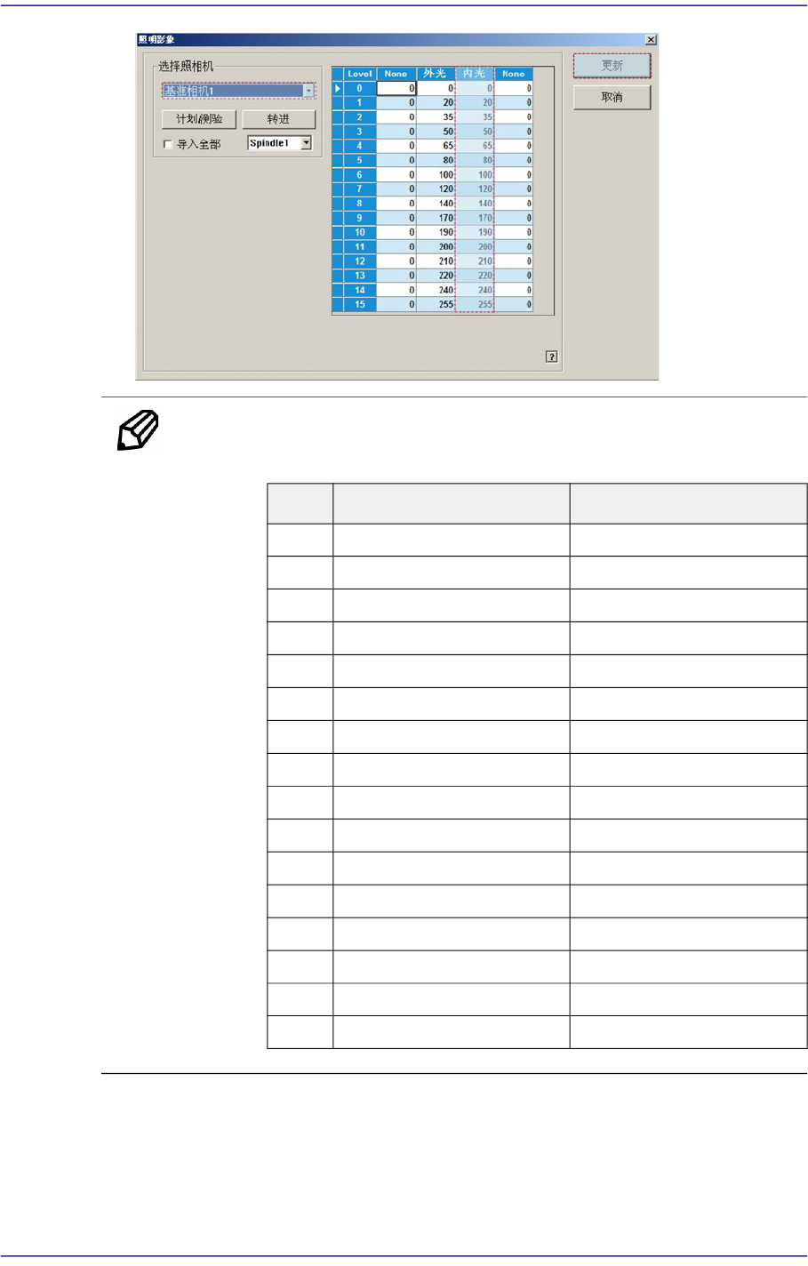 备 注 下面是Fiducial Camera Inner照明的基准值。