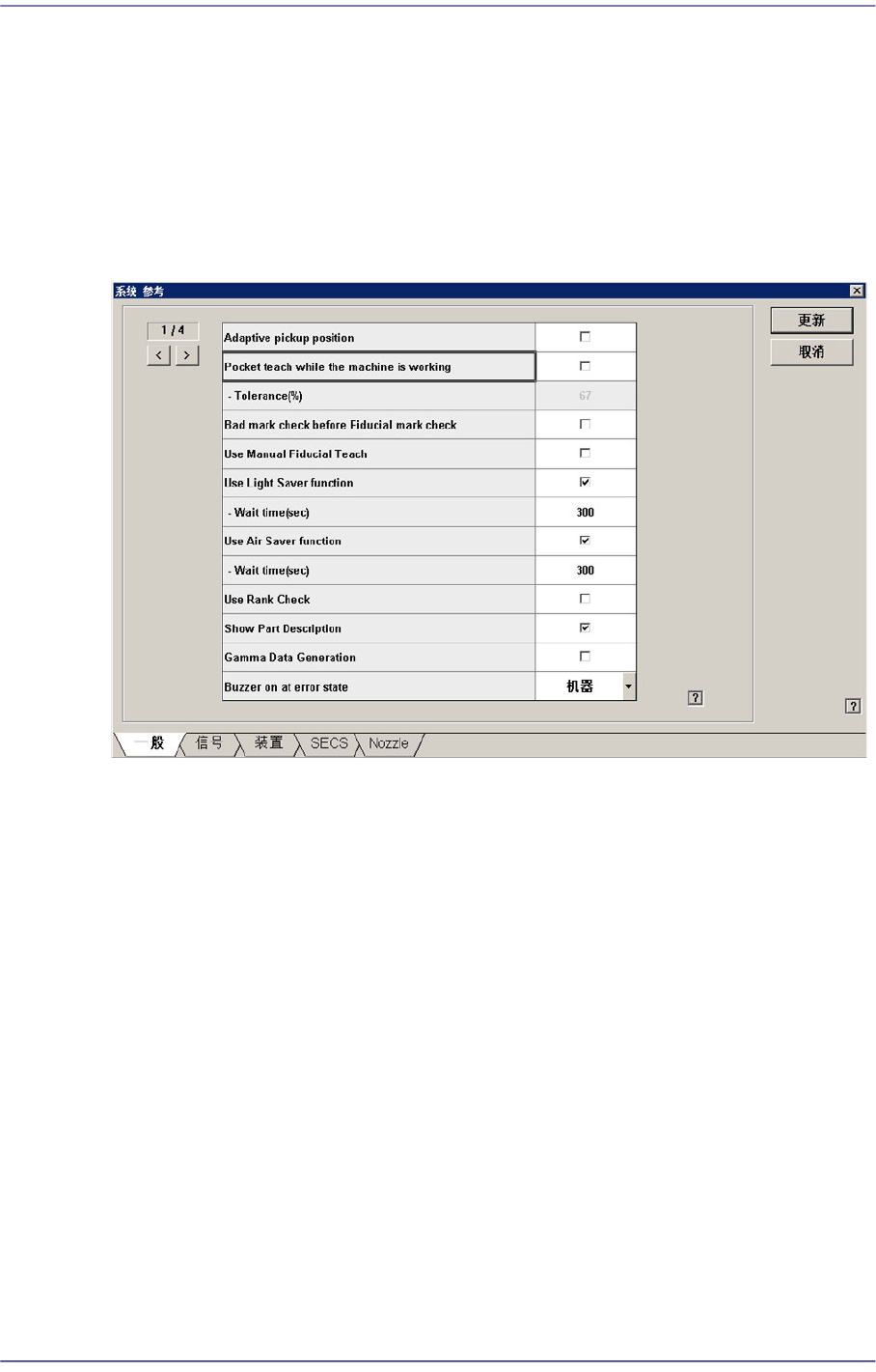 果选择此功能,贴装时基准标识别失败,则在MMI画面下端的错误信息框中显