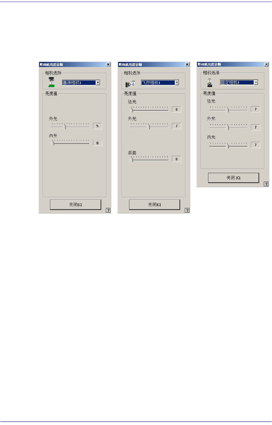 16-5 Diagnosis( 诊断 ) 16.3. 灯光 ( Light ) [F4] 检查安装在移动照相机 , 飞行照相机固定照相机的照明装置。 图 16.6 “ 诊断 : 照相机亮度诊断 ” 初始画面 < 相机选择 > 领域 选择装有将要检查的照明装置的摄象机。 基准相机 1/2: 选择基准相机。 头 1 ~ 头 10: 选择 1 号 ~ 10 号头。 Fix Cam: 选择头部的基准相机。 <…