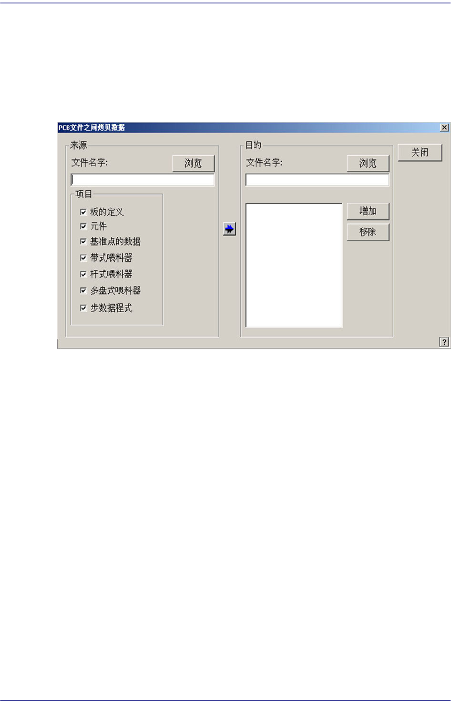 用于选择从原本PCB文件复制信息的适用目标PCB文件。