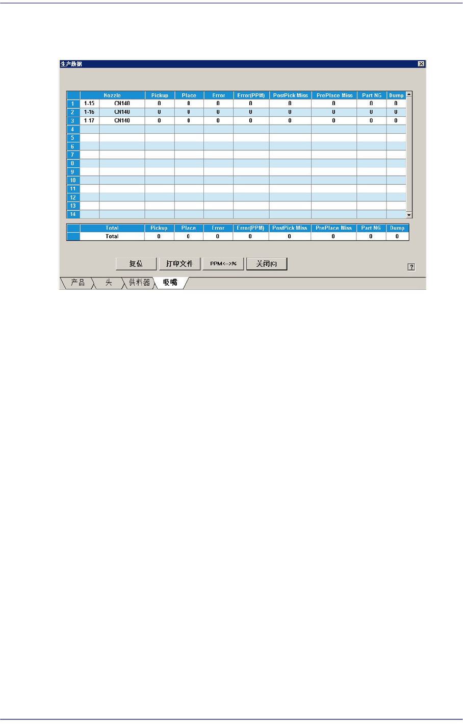 吸嘴无法贴装部件时的故障用PPM单位显示。