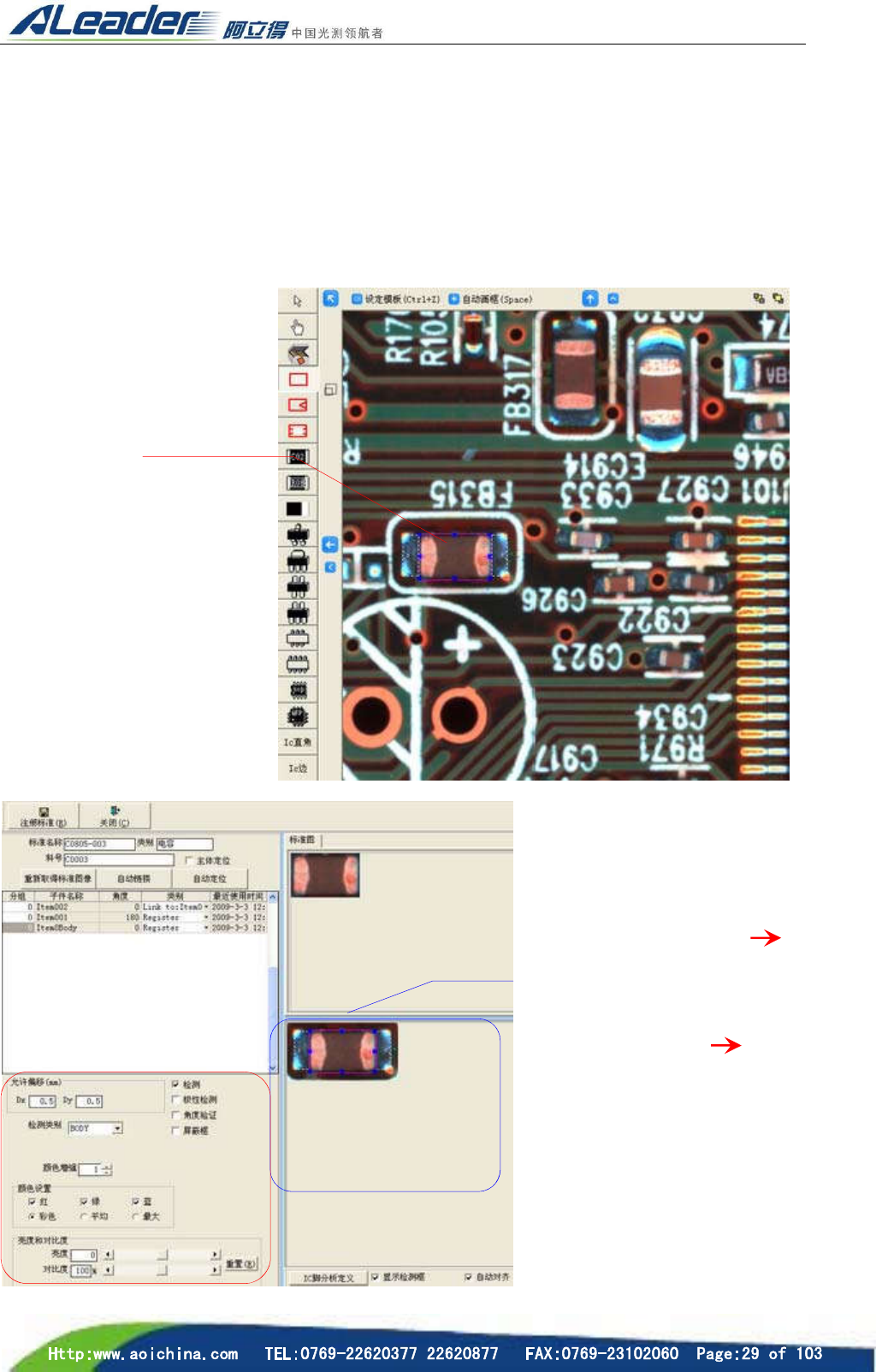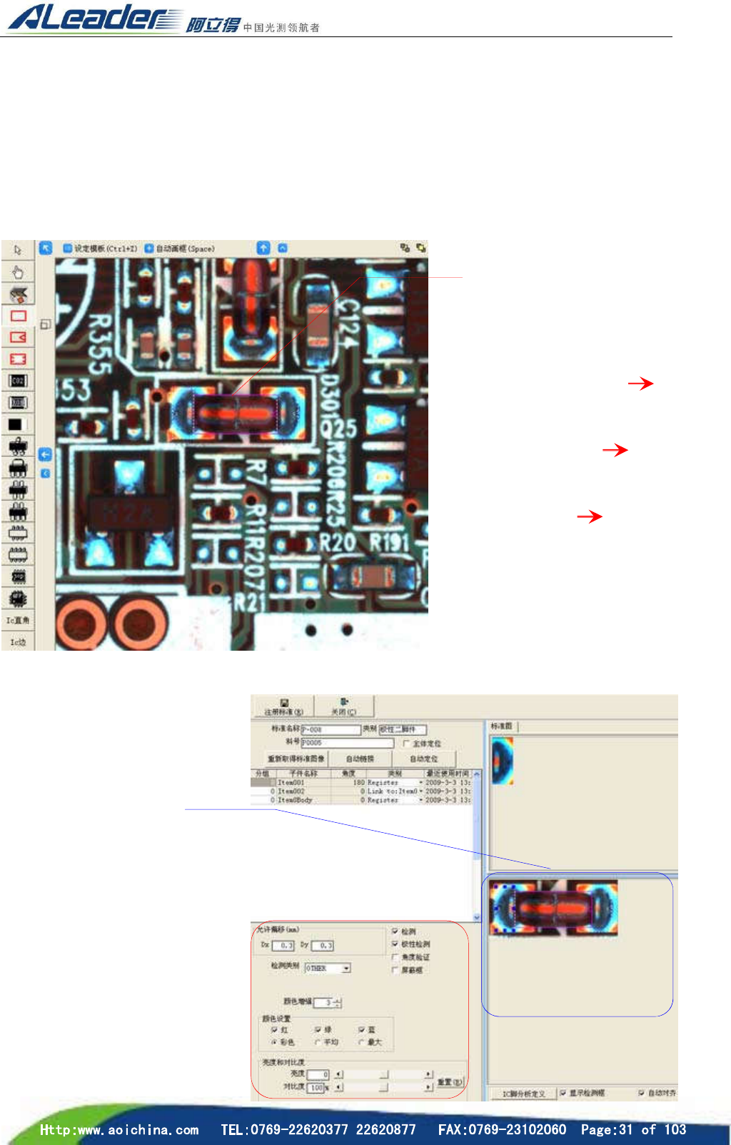 检测过程中不仅仅测元件的正确与否,还对该类元件的极性进行检测和判断。通常在调节像锡点框较